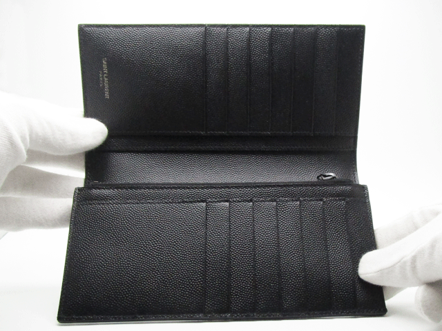 【中古極美品】 サンローラン・パリ (Saint Laurent) 長財布 二つ折り コンチネンタルウォレット グレインパウダーテクスチャードレザー ブラック 黒 396308 メンズ