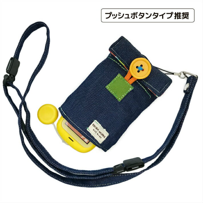 【Pulllu -ぷるる-】ポケット付 #ブルーデニム×カラフルストライプ キッズ携帯ケース キッズ携帯カバー docomo キッズケータイ F-03J au マモリーノ softbank みまもりケータイ ストラップ