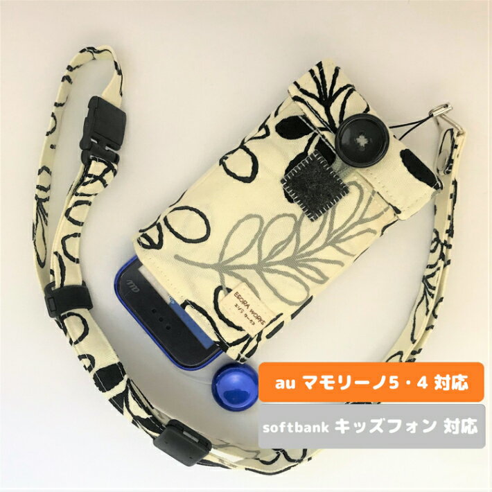 【ぷるる・L】ポケット付 #リーフ(アイボリー) キッズ携帯ケース キッズ携帯カバー au マモリーノ5 マモリーノ4 softbank キッズフォン ストラップ