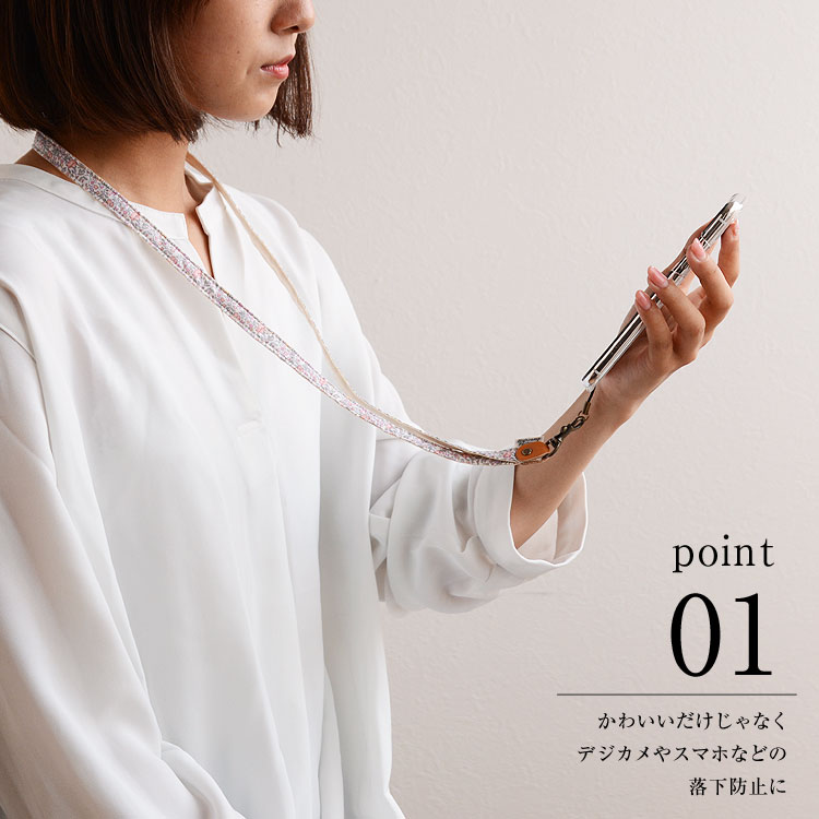 【スマホ ネックストラップ スマホ・ストラップ スマートフォン・かわいい ネックストラップ 肩掛け 斜め掛け キッズ 子供 リバティ 花柄 レディース 女性 大人女子 ハンドメイド】■HIGHCAMP オリジナル ネックストラップ。