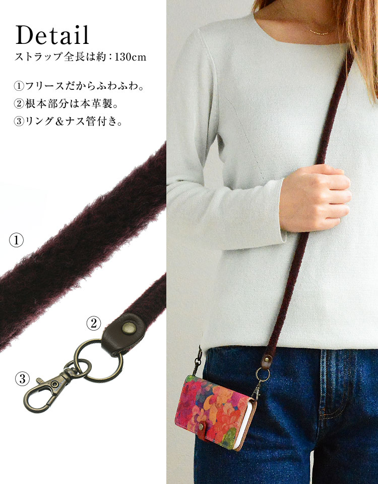 【スマホ・ストラップ スマートフォン・かわいい ショルダーストラップ 肩掛け 斜め掛け キッズ 子供 ふわふわ ふわもこ フリース レディース 女性 大人女子 ハンドメイド】■HIGHCAMP オリジナル ショルダーストラップ。
