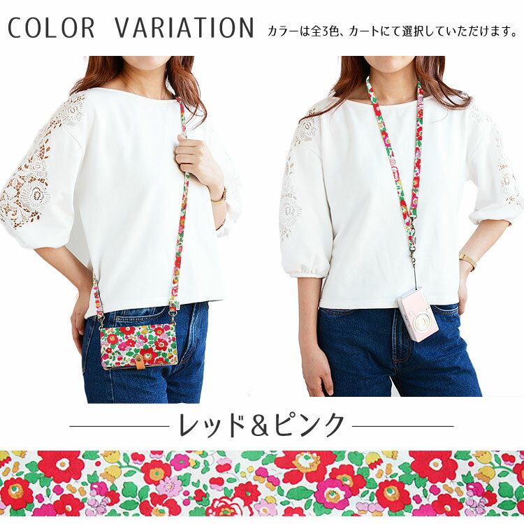 ・ネックストラップとしてもショルダーストラップとしてもお使いいただける2wayタイプ 根付け耐荷重 ・1kgまで カラー レッド&ピンク、グリーン、ブルーグレー系 素材 ・リバティファブリック 送料 ※この商品はメール便送料無料です。
