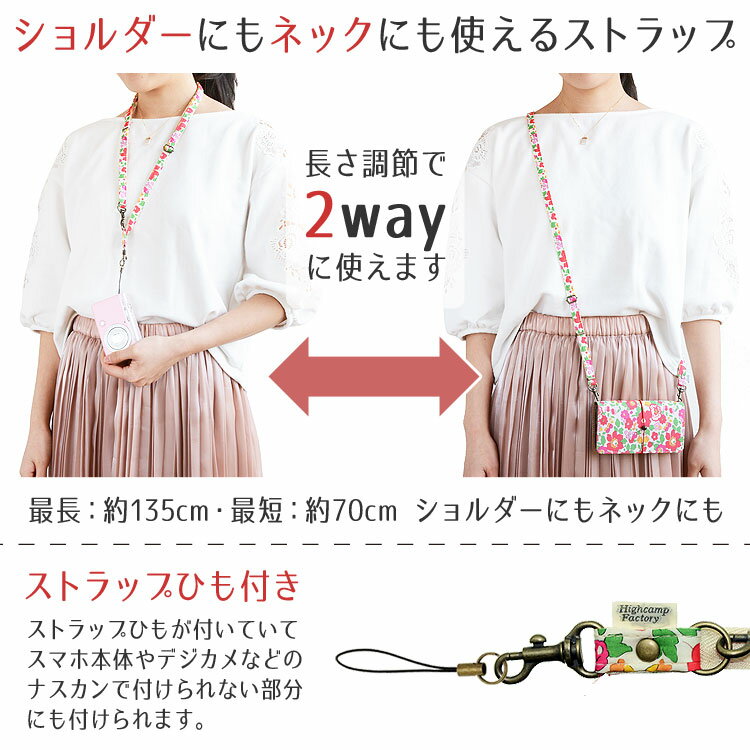 【スマホ ネックストラップ スマホ・ストラップ スマートフォン・かわいい ネックストラップ 肩掛け 斜め掛け キッズ 子供 リバティ 花柄 レディース 女性 大人女子 ハンドメイド】■HIGHCAMP オリジナル 2wayネックストラップ。
