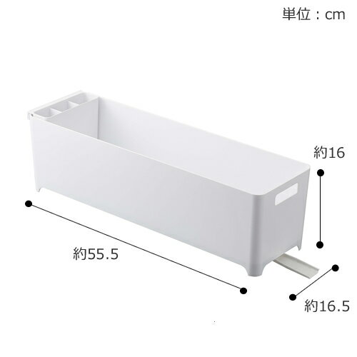 仕様 サイズ:約W55.5×D16.5×H16cm 重量:約1kg容量:約7.5L 素材:[本体・カトラリーポケット]ABS樹脂、[水はけ]ポリプロピレン、[水止栓]シリコーン 耐熱温度:80℃ 耐冷温度:-40℃ 耐荷重:約8kg 付属品:カトラリーポケット×1個 対応サイズ:奥行約50cm以内のシンク、厚み約1.8cmのまな板tower タワー 山崎実業 スリム水切りバスケット ロング スリムだから狭いシンクにも対応! 約17cmとスリムだから シンク横のちょっとしたスペースに置くことができます。